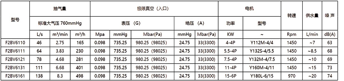2.上列性能基于進(jìn)氣溫度20℃,進(jìn)水溫度15℃,排氣壓力1013hpa的條件,被吸入氣體為飽和空氣。(飽和空氣是指在對(duì)應(yīng)吸入狀態(tài)下,其相對(duì)濕度為100%的濕空氣。)